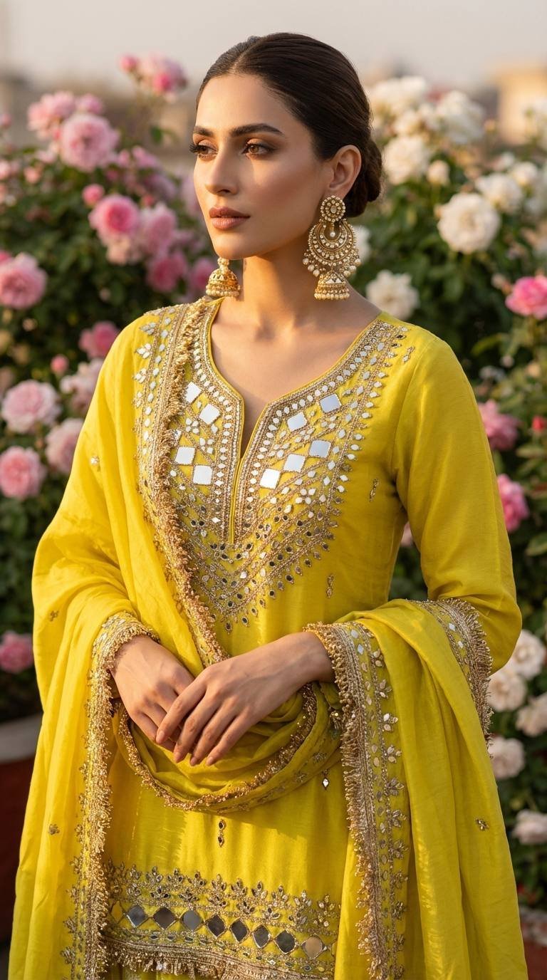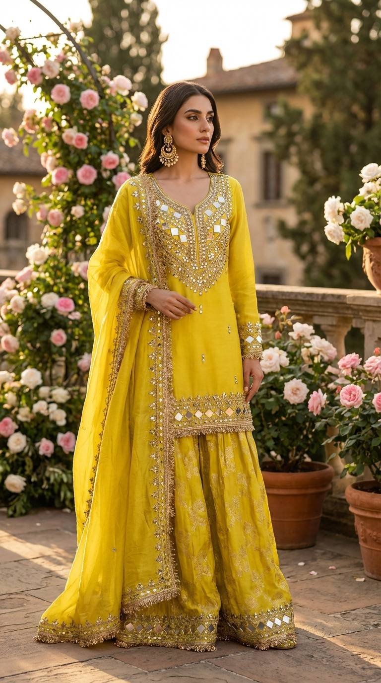 Lime Yellow Sharara Exclusive Dress – S000078C