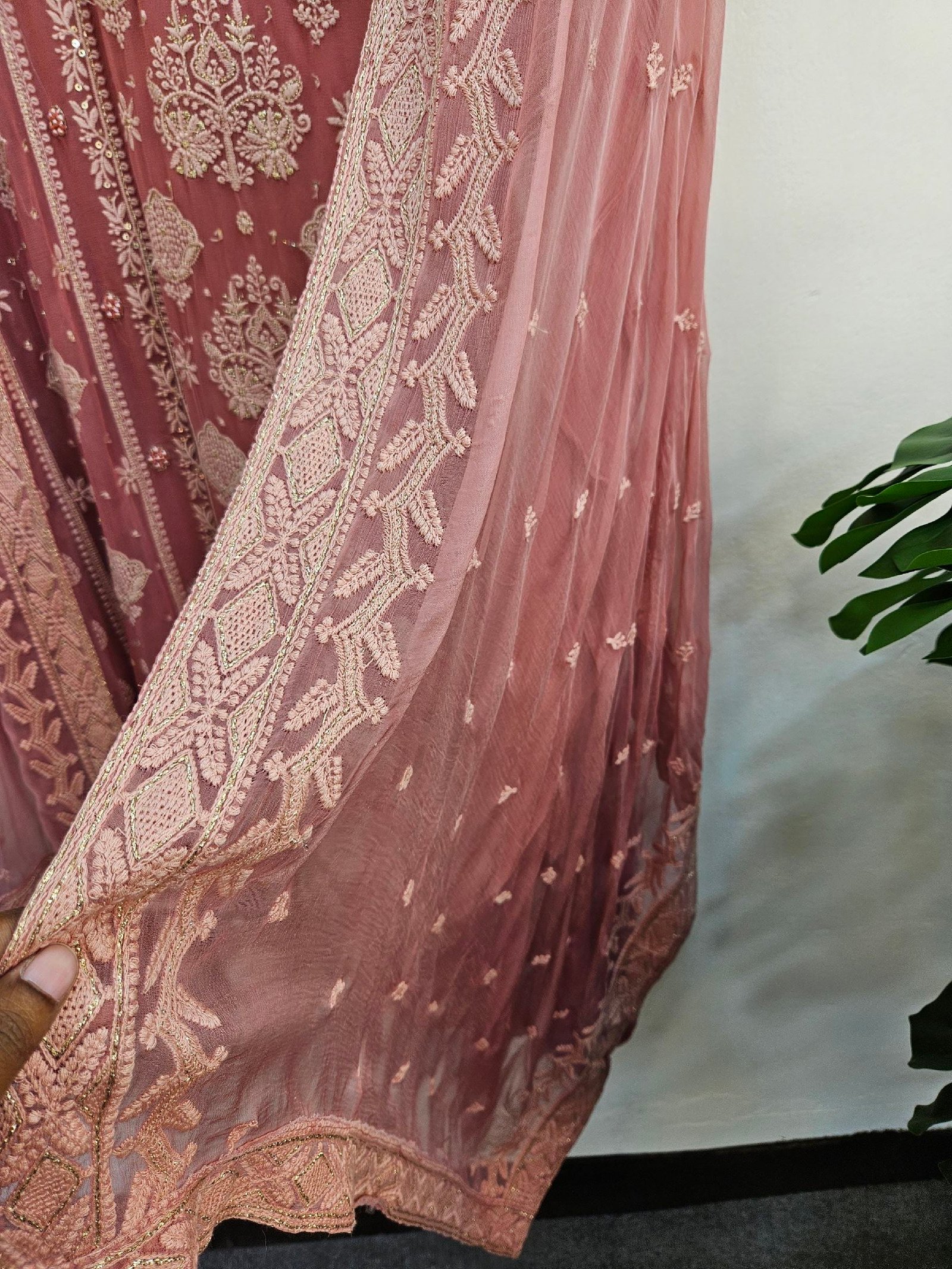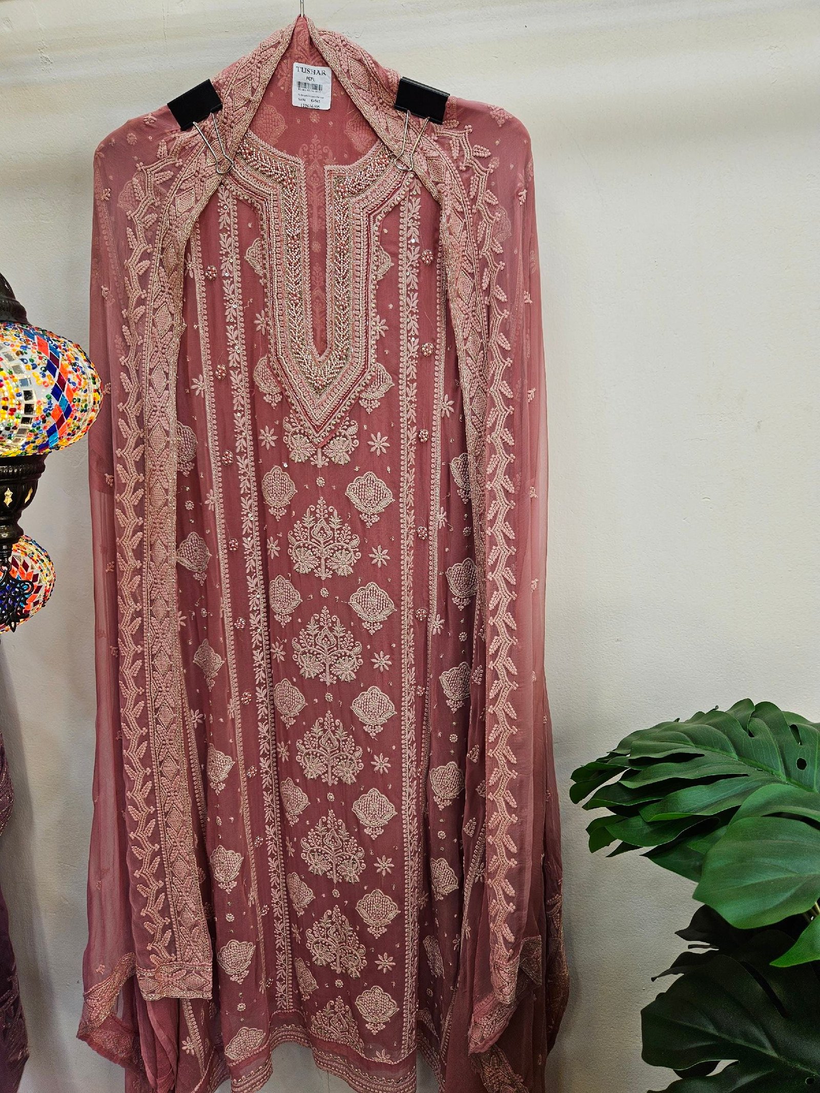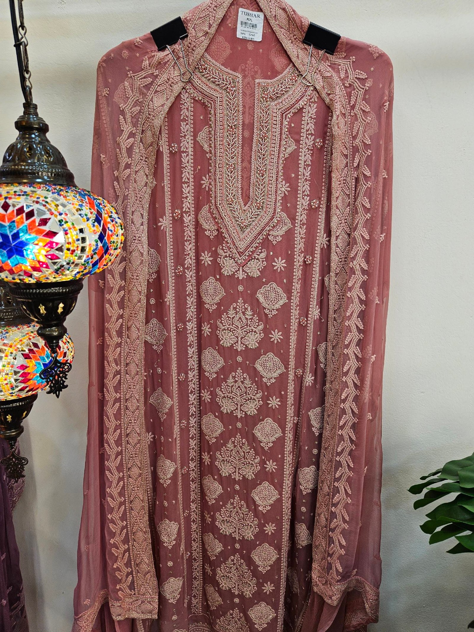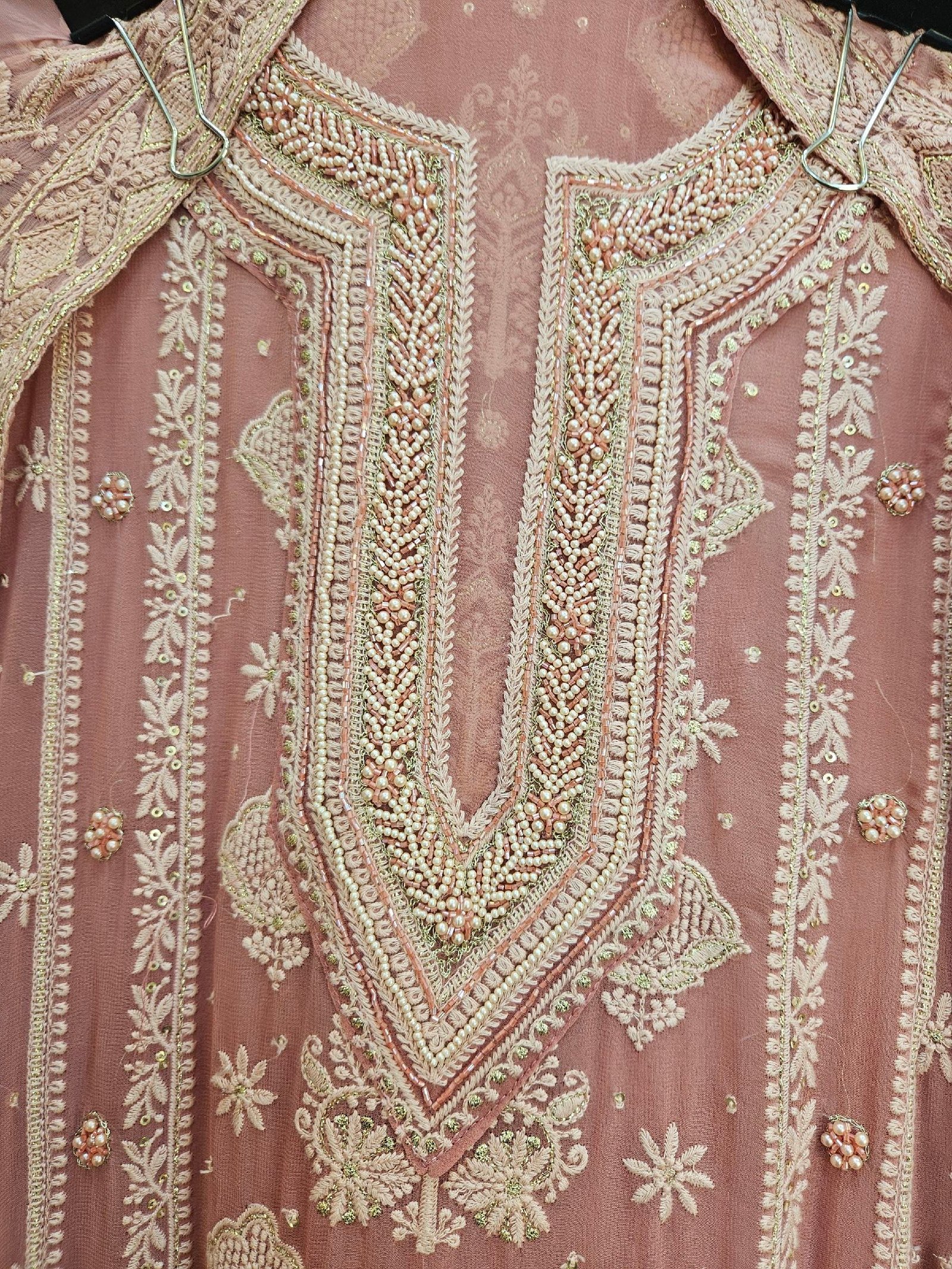 Pure Lucknowi embroidery enhanced with delicate hand pearl work all over, paired with a pure dupatta featuring elegant four-side borders and intricate butti detailing. Completed with a comfortable santoon bottom, this ensemble reflects a sober yet truly elegant collection—perfect for refined summer sophistication. ✨