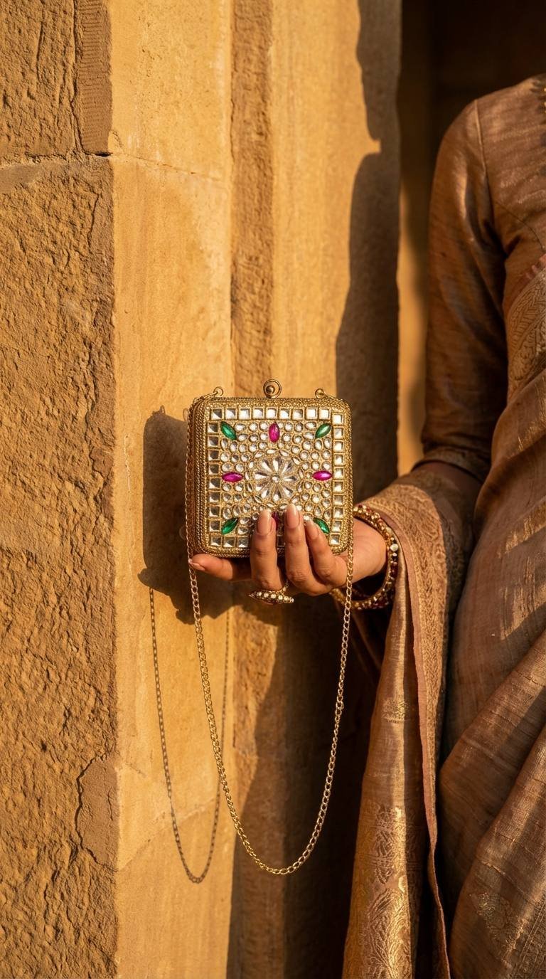 Luxury Kundan Clutch | Embellished Bag – S001262C