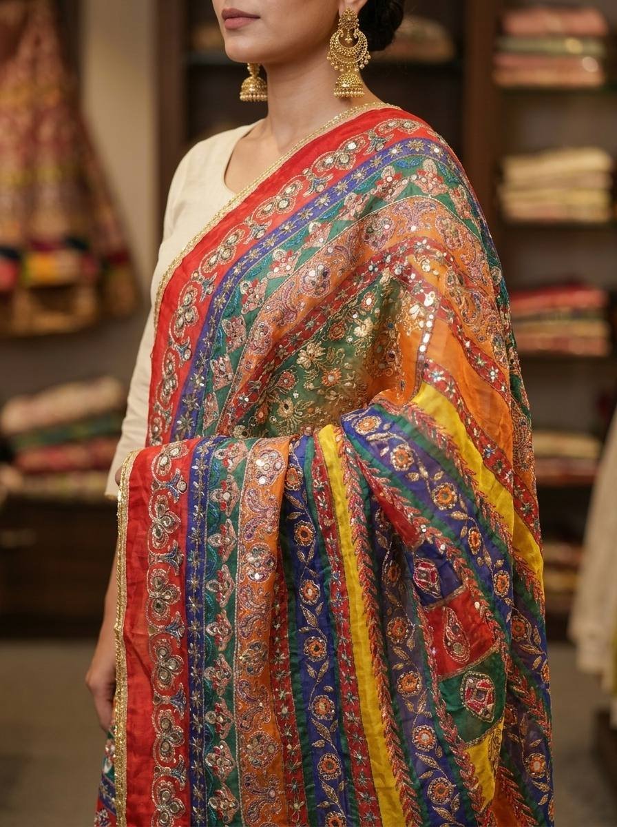 Previous Product Next Product Multicolor Chinon Silk Dupatta with Mirror & Aari Work ৳ 4,500 5 in stock Multicolor Chinon Silk Dupatta with Mirror & Aari Work quantity Add to cart Category: Dupatta Share this: Share on Facebook (Opens in new window) Facebook Share on X (Opens in new window) X Description Reviews (0) Description Fabric – Chinon Silk Work – Mirror & Aari Pasted Reviews There are no reviews yet. Be the first to review “Multicolor Chinon Silk Dupatta with Mirror & Aari Work” Cancel replyYour email address will not be published. Required fields are marked *Your rating * Rate… Perfect Good Average Not that bad Very poor Your review *Name * Email * Save my name, email, and website in this browser for the next time I comment. Related products Sale! DupattaMulticolor Chinon Silk Dupatta with Mirror & Pearl Work ৳ 4,500 Original price was: ৳ 4,500.৳ 3,500Current price is: ৳ 3,500. ADD TO CART Sale! DupattaMulticolor Chinon Silk Dupatta with Mirror & Pearl Work ৳ 4,500 Original price was: ৳ 4,500.৳ 3,500Current price is: ৳ 3,500. Rated 5.00 out of 5ADD TO CART Sale! DupattaMulticolor Chinon Silk Dupatta with Mirror & Pearl Work ৳ 4,500 Original price was: ৳ 4,500.৳ 3,500Current price is: ৳ 3,500. ADD TO CART
