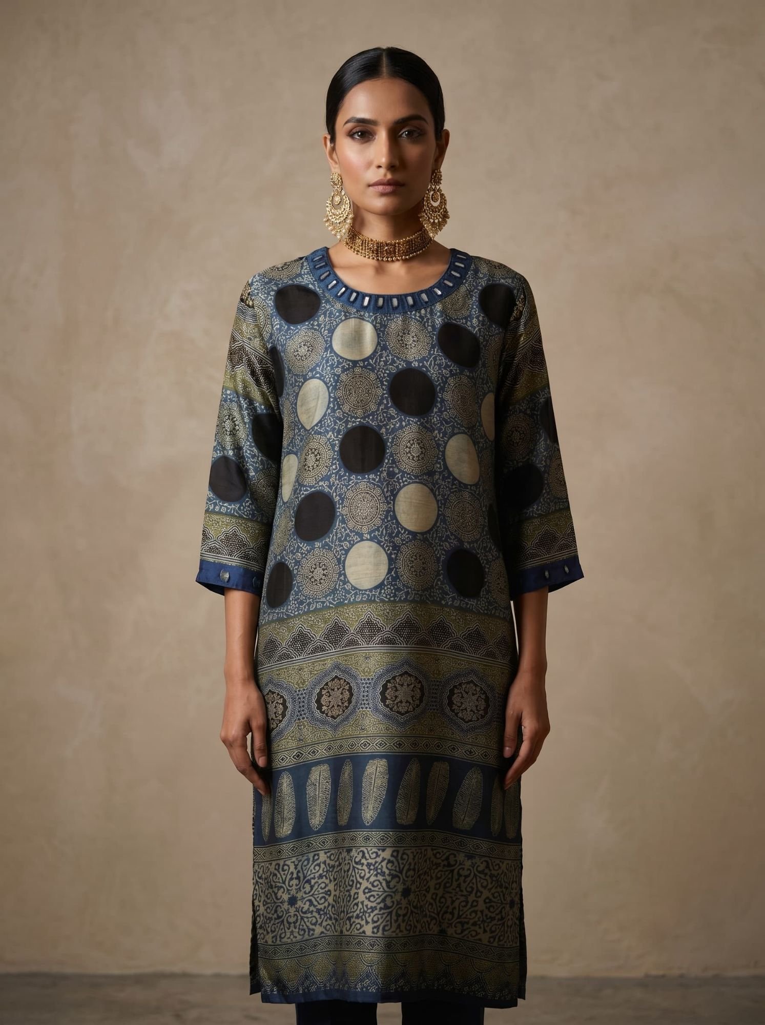 Previous Product Next Product Natural Ajrakh Hand-Dyed Gajji Silk Kurti ৳ 4,800 Size Choose an option38404244Clear Natural Ajrakh Hand-Dyed Gajji Silk Kurti quantity Add to cart SKU: S004122C Categories: Ajrakh, Kurti/Top, Stitched Share this: Share on Facebook (Opens in new window) Facebook Share on X (Opens in new window) X Details Reviews (0) Details Size 38, 40, 42, 44 Reviews There are no reviews yet. Be the first to review “Natural Ajrakh Hand-Dyed Gajji Silk Kurti” Cancel replyYour email address will not be published. Required fields are marked *Your rating * Rate… Perfect Good Average Not that bad Very poor Your review *Name * Email * Save my name, email, and website in this browser for the next time I comment. Related products Luxury Formals, Stitched, WomenDesigner Co Ords Set ৳ 6,800 ADD TO CART Luxury Formals, Stitched, WomenPure Zardozi Handwork Tissue Silk Stitched Dress ৳ 14,800 Select Options This product has multiple variants. The options may be chosen on the product page Luxury Formals, Stitched, WomenDesigner Co ord set ৳ 9,800 ADD TO CART