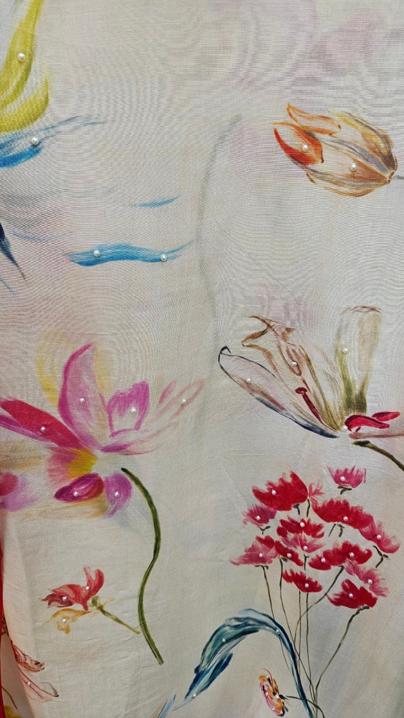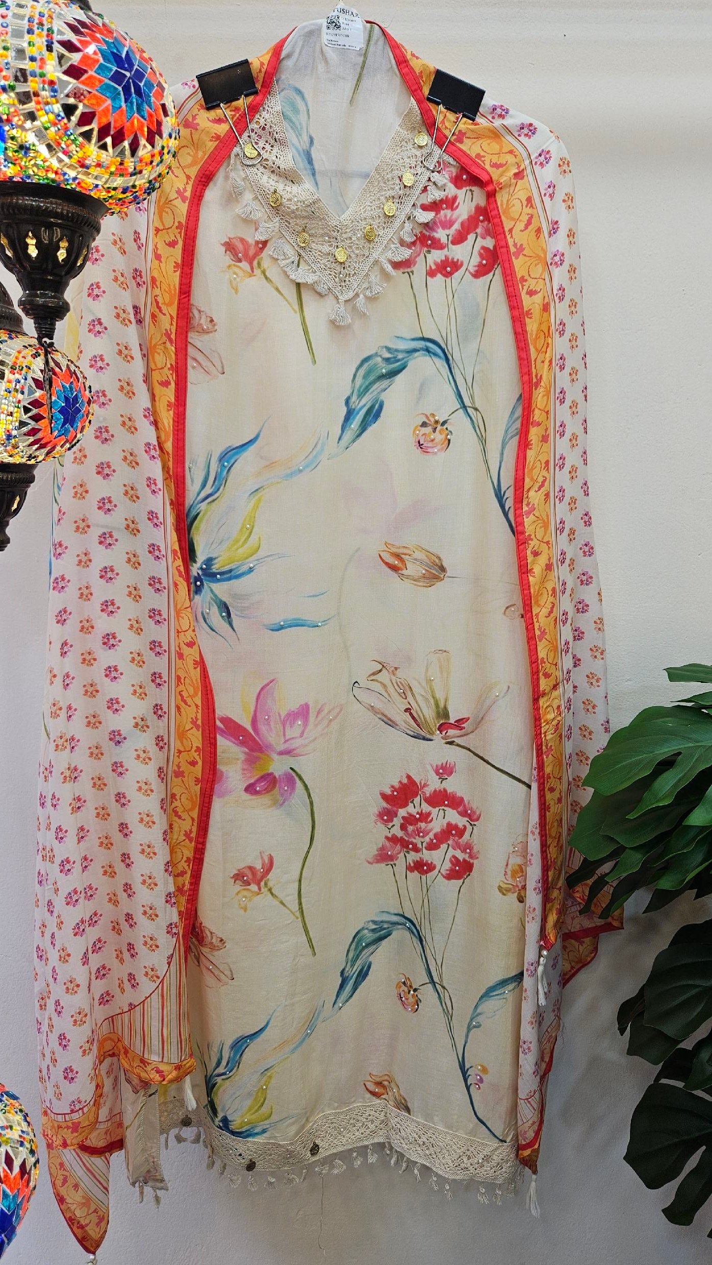 Pure mal mal cotton silk fabric with a luxuriously soft and silky vibe, beautifully enhanced with delicate handwork detailing and elegant digital prints. Paired with a matching mal mal cotton silk digital printed dupatta and comfortable santoon bottom.