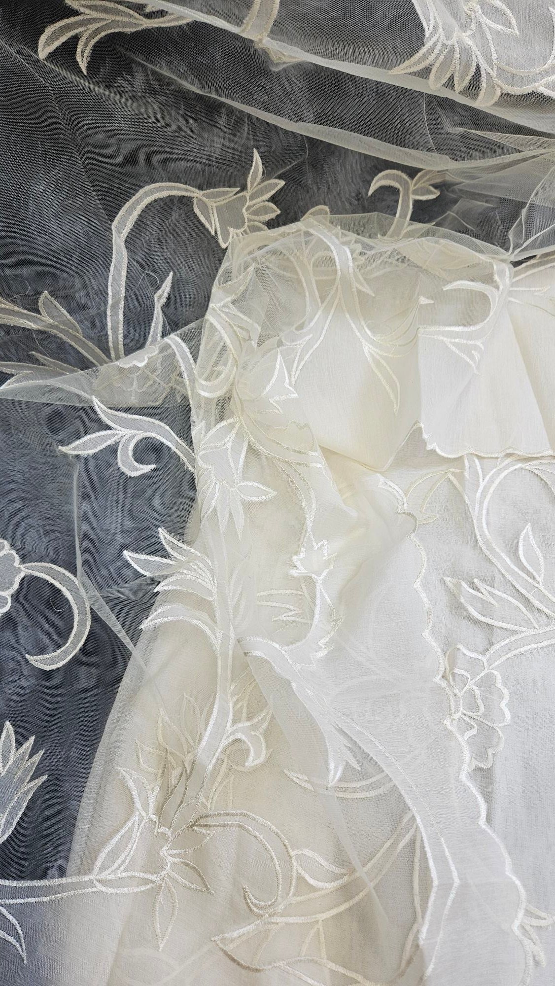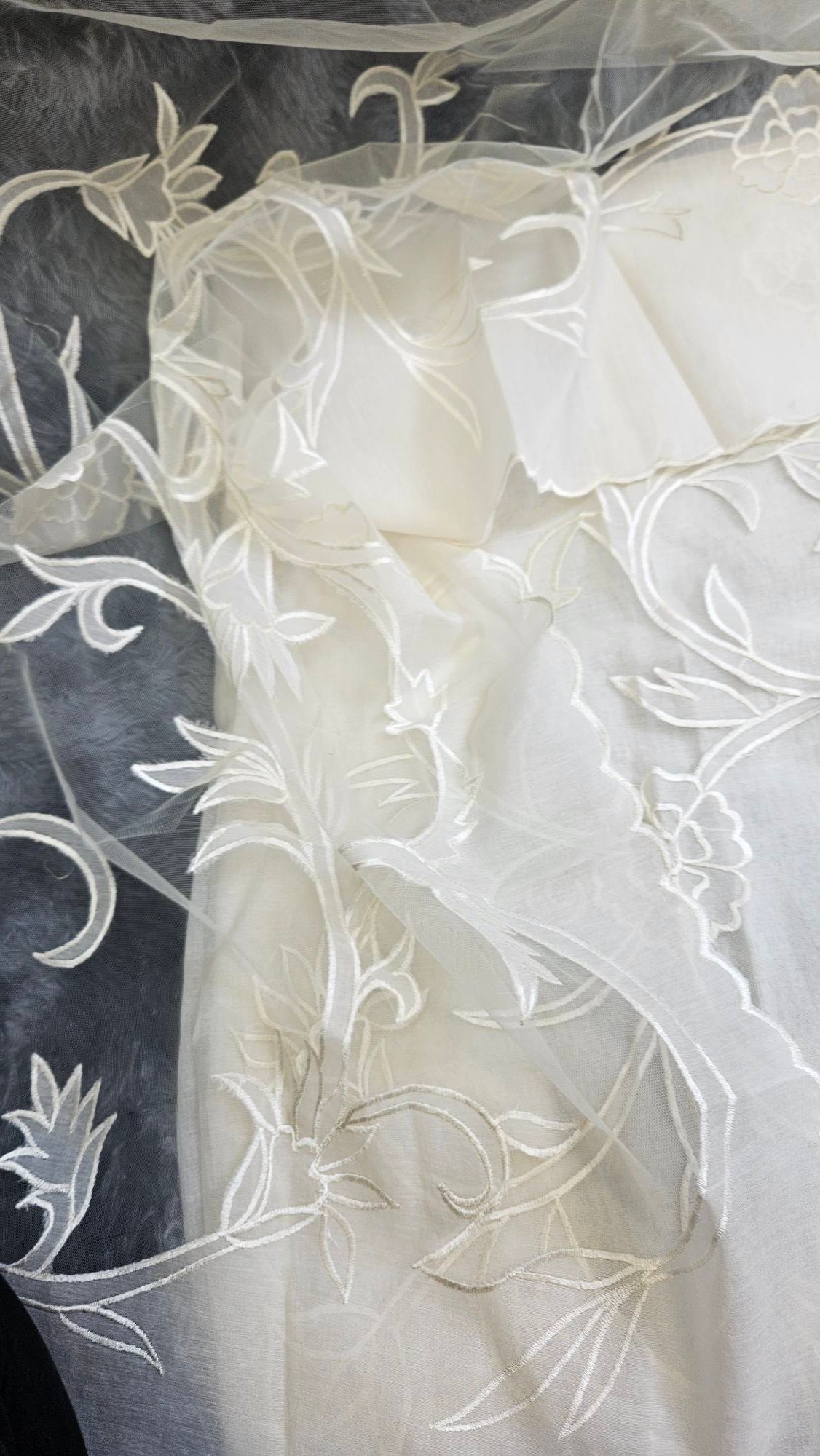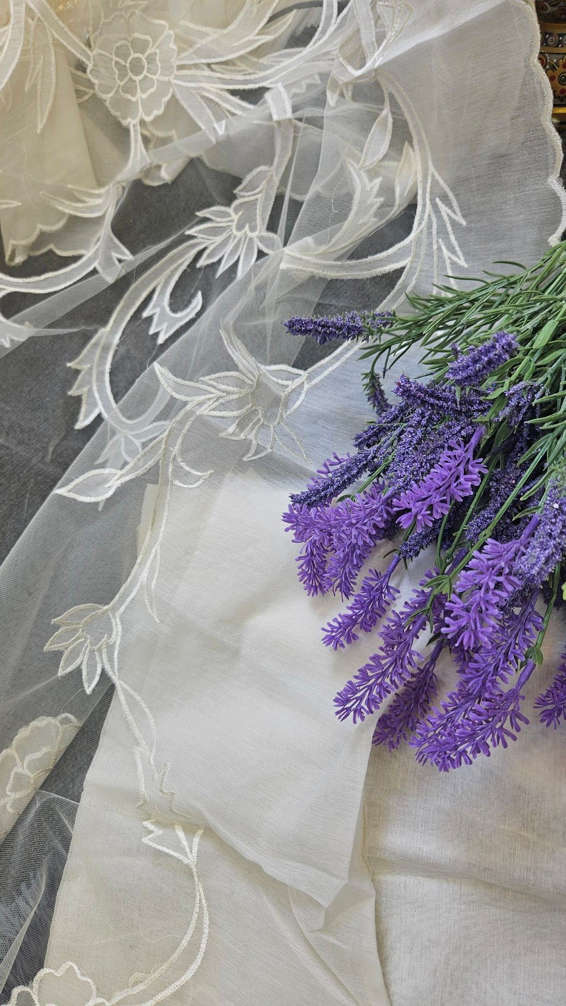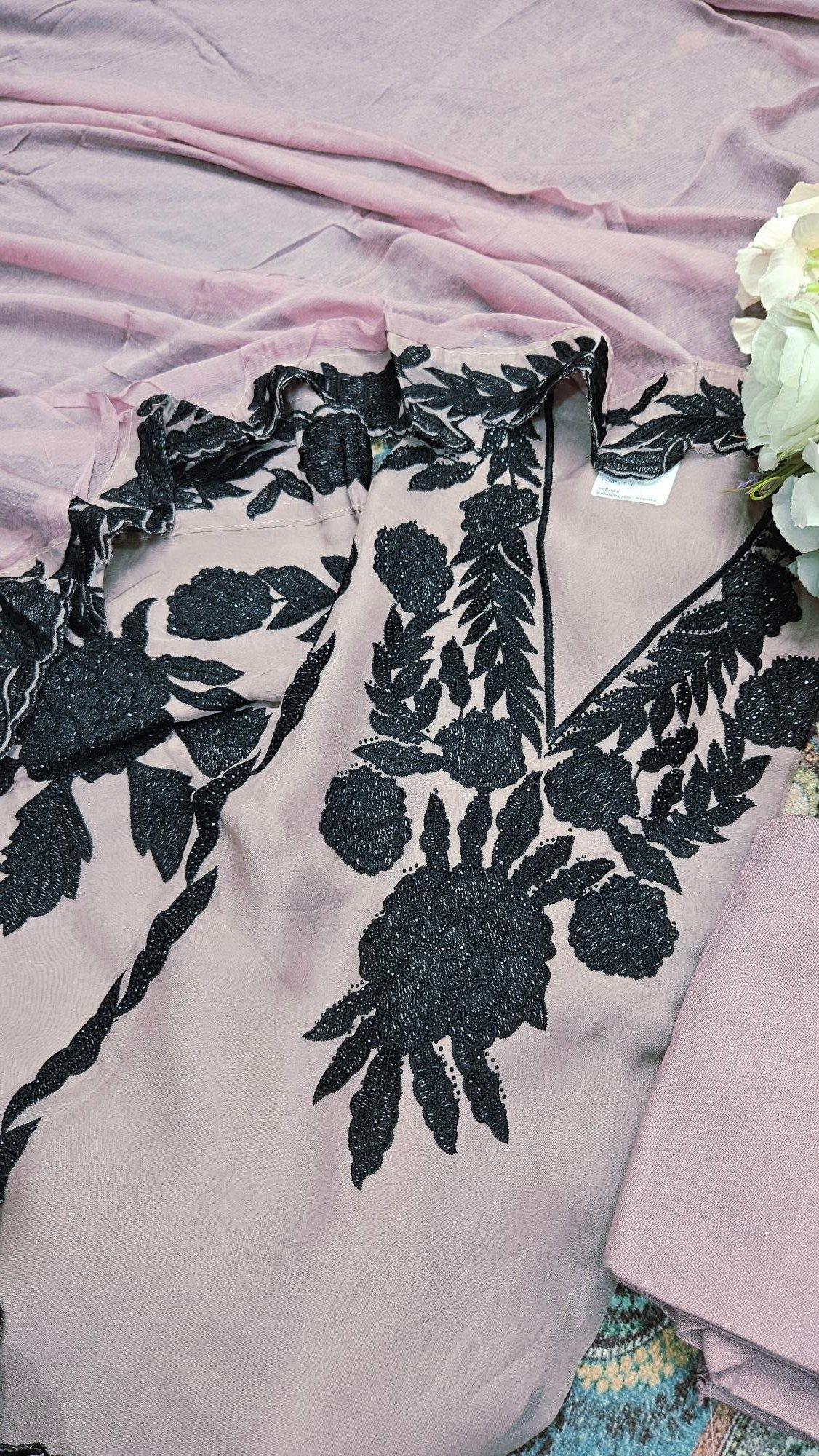 Soft, breathable mul Chanderi in an elegant ivory hue, highlighted with delicate appliqué work. The subtle sheen and handcrafted detailing create a timeless, graceful look—perfect for refined boutique wear and understated festive elegance.