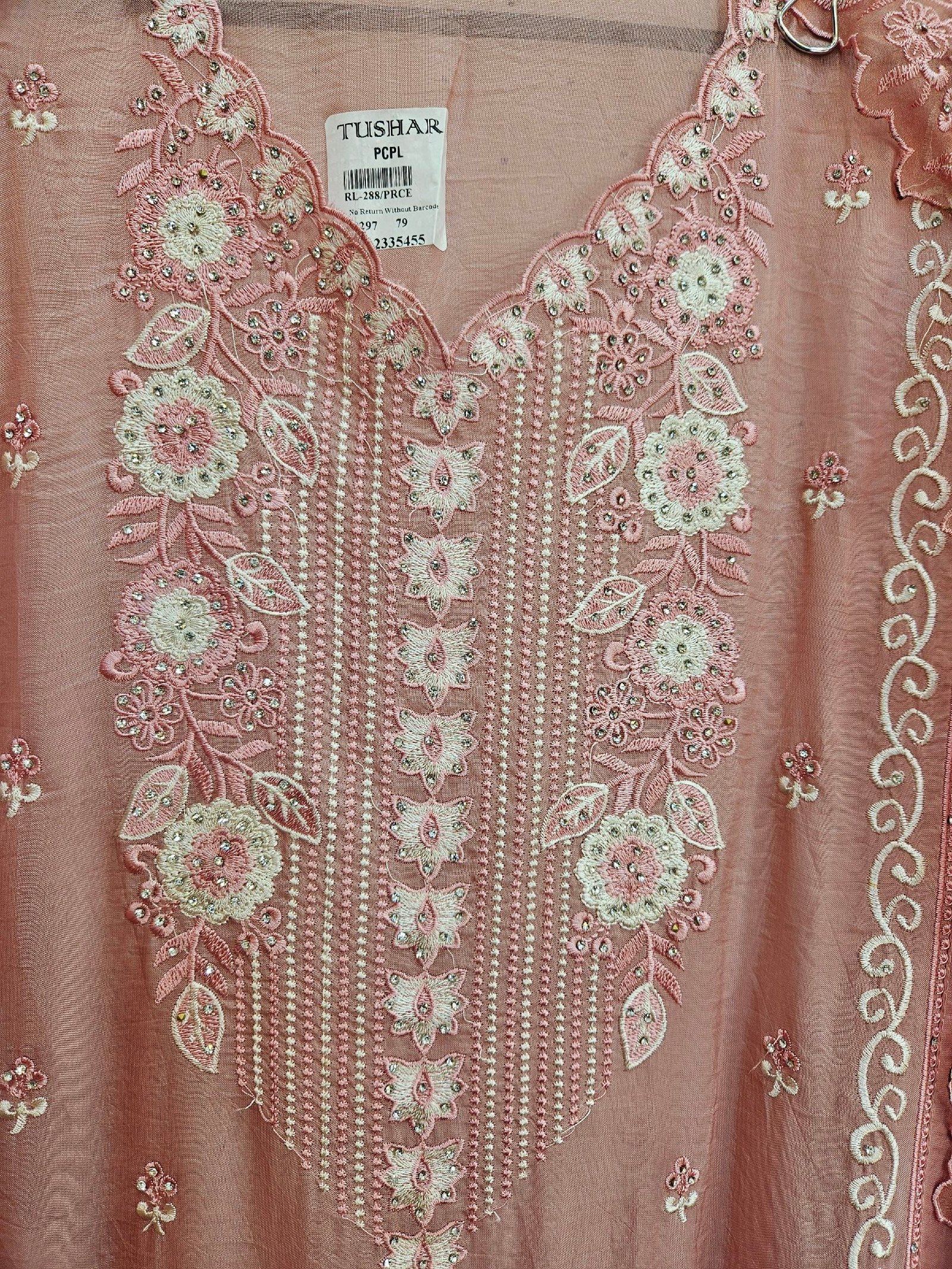 Pure muslin fabric adorned with beautiful embroidery and elegant stone work ✨