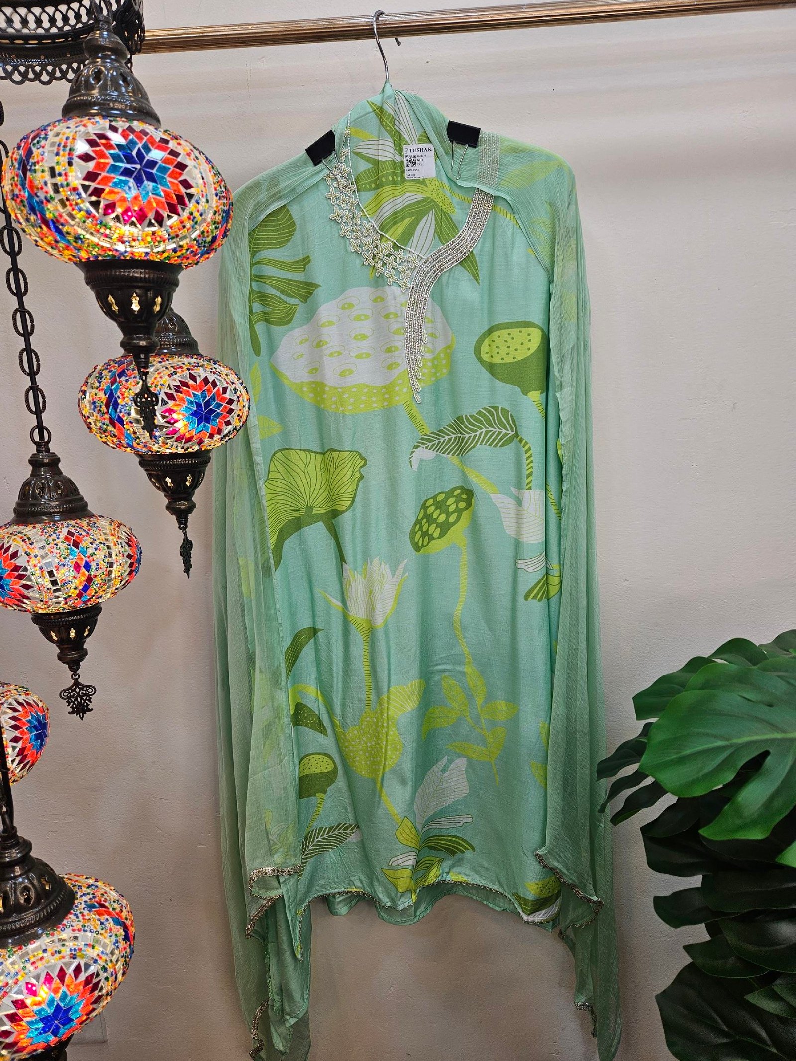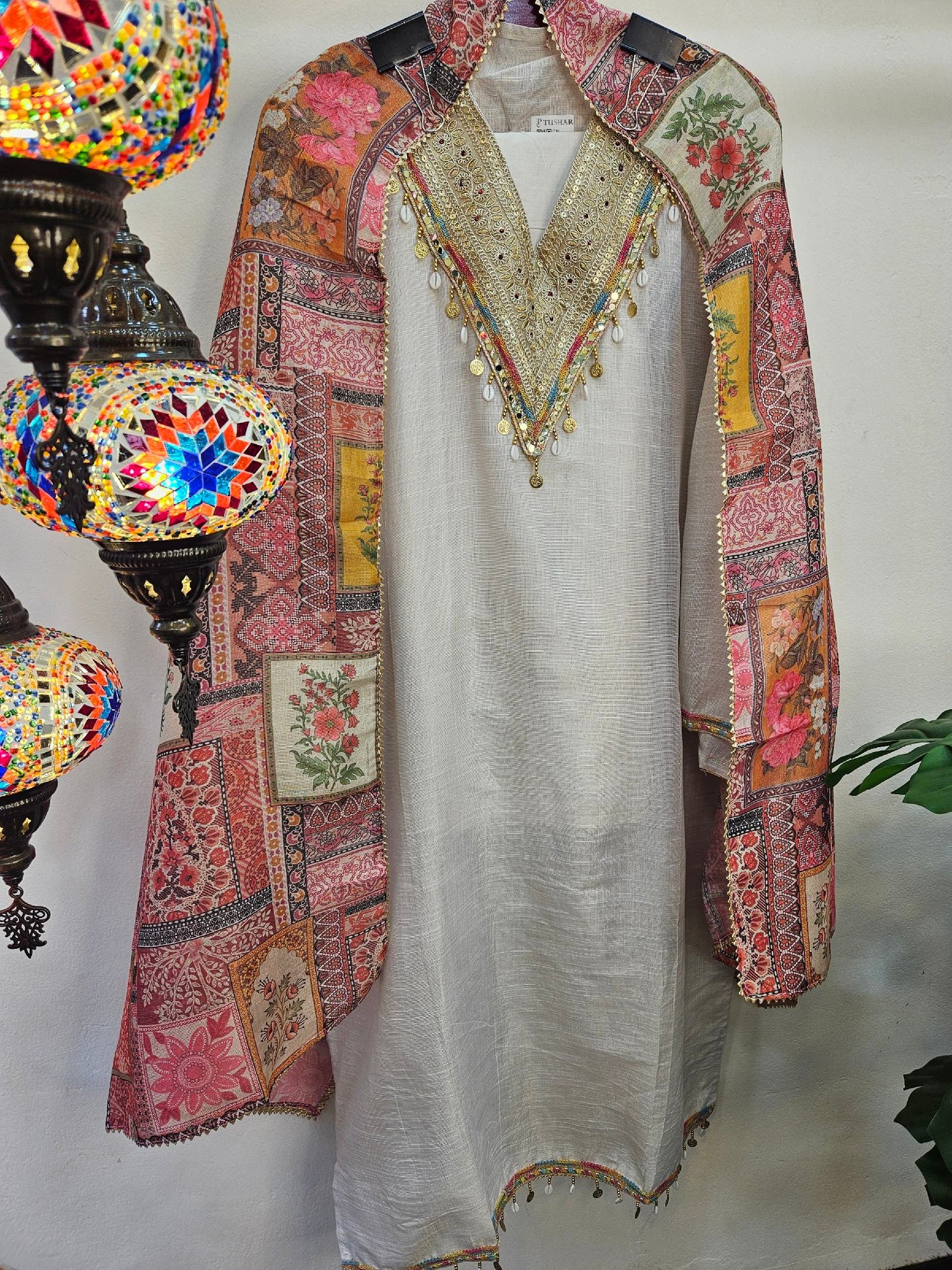 Comes with a matching muslin digital printed dupatta with pearl lace and santoon bottom.