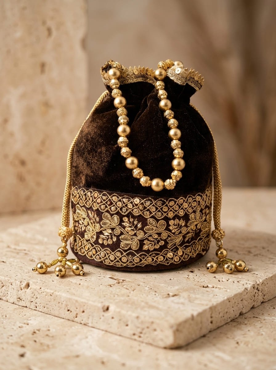 Previous Product Next Product Velvet Luxe Pouch ৳ 1,200 10 in stock Velvet Luxe Pouch quantity Add to cart SKU: S003152C Categories: Bag, Potli Share this: Share on Facebook (Opens in new window) Facebook Share on X (Opens in new window) X Details Reviews (0) Details Material Velvet Reviews There are no reviews yet. Be the first to review “Velvet Luxe Pouch” Cancel replyYour email address will not be published. Required fields are marked *Your rating * Rate… Perfect Good Average Not that bad Very poor Your review *Name * Email * Save my name, email, and website in this browser for the next time I comment. Related products Bag, Kundan / BrassMinaudière Artisan Bag Cum Locket – S001273C ৳ 2,800 ADD TO CART Bag, Kundan / BrassArtisan Mirror-Work Clutch Mini Bag – S000301C ৳ 5,800 ADD TO CART Out of Stock Bag, Kundan / BrassLuxury Kundan Clutch | Mini Embellished Minaudière Bag – S000297C ৳ 7,500 ADD TO CART