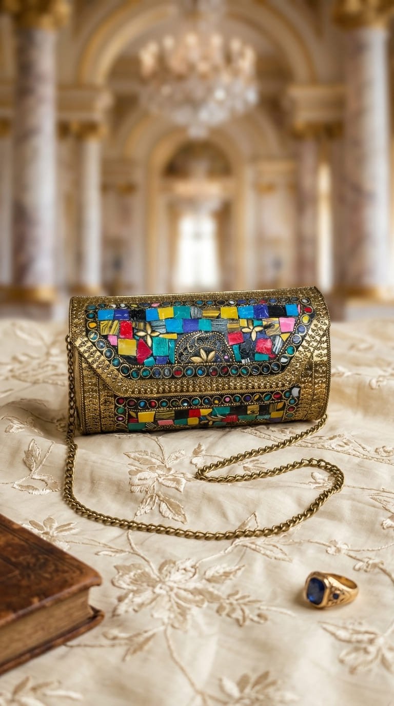 Luxury Kundan Clutch | Mini Embellished Minaudière Bag – S001254C