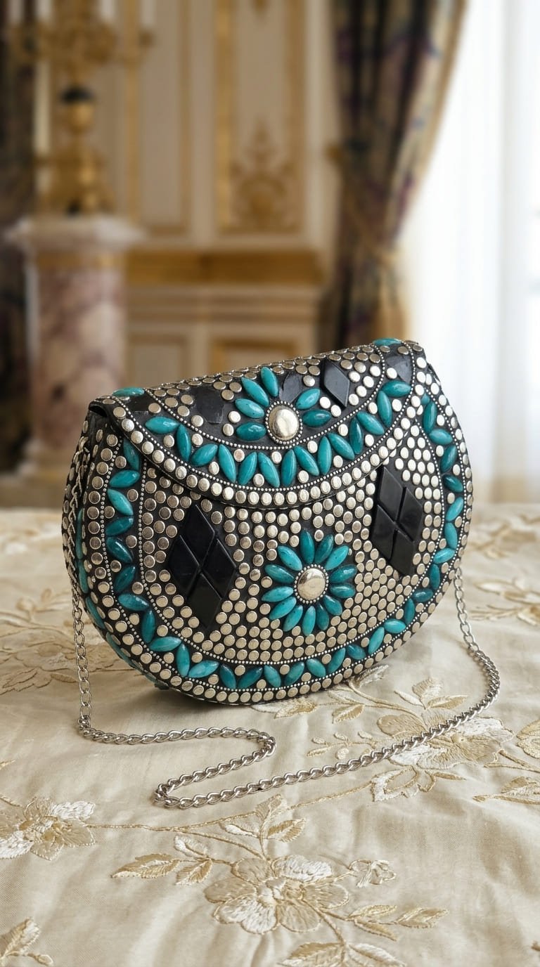 Luxury Kundan Clutch | Mini Embellished Minaudière Bag – S001252C