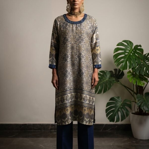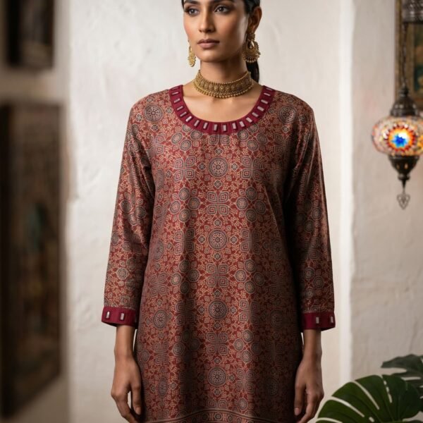 Natural Ajrakh Hand-Dyed Gajji Silk Kurti