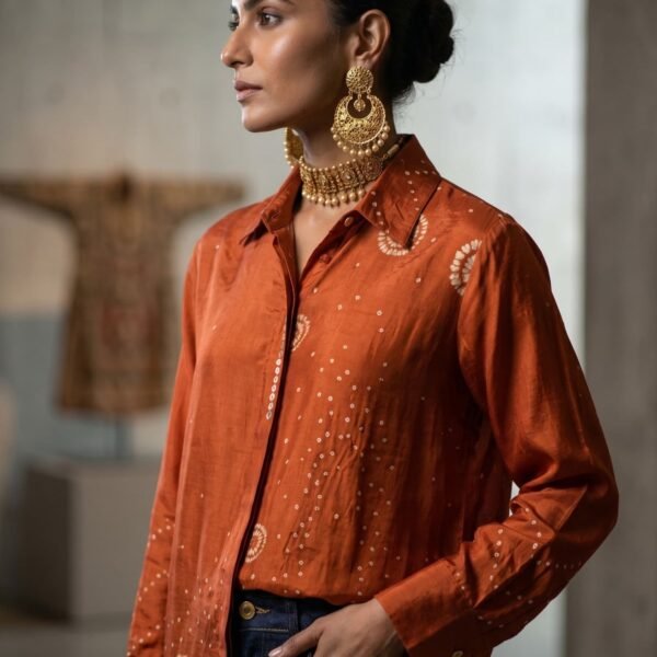Natural Ajrakh Hand-Dyed Crepe Silk Shirt